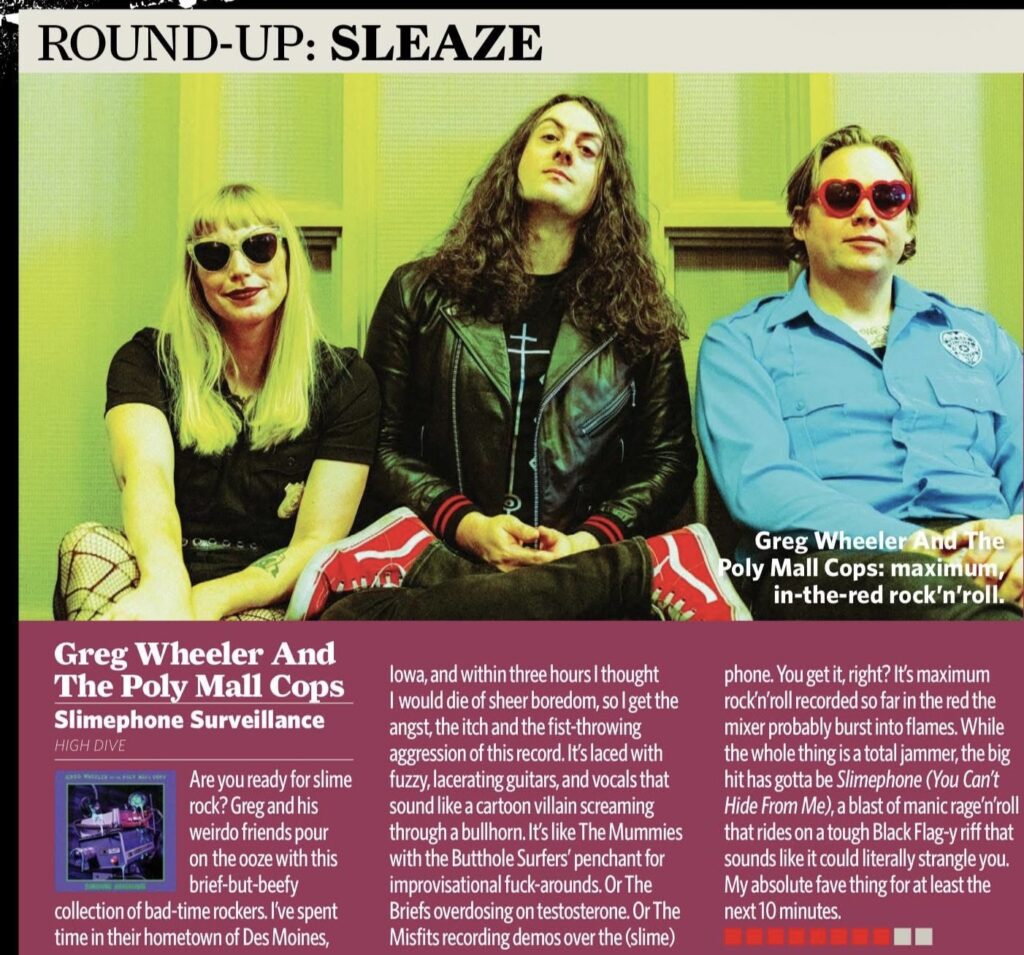 Who would have thought this little garage punk band would get a glowing review in a major publication with Ozzy on the cover? UK publication Classic Rock Magazine reviewed Greg Wheeler and the Poly Mall Cops’ new album “Slimephone Surveillance” in their most recent issue’s “sleaze round up.”